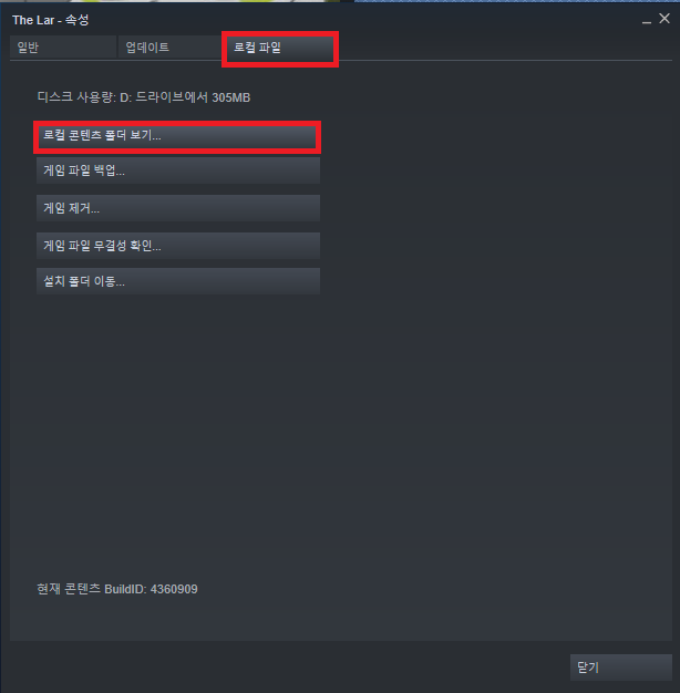 스팀 라이브러리 -> The Lar 우클릭 -> 속성 에 들어갑니다.